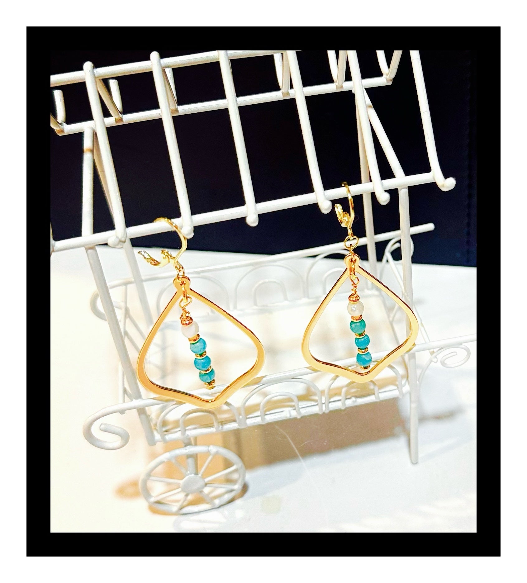 The Sophisticated Serpentine Earring Set exudes an air of mystery and refinement, blending earthy elegance with luminous grace. These earrings feature serpentine beads, known for their transformative energy, complemented by a mother of pearl accent, which radiates wisdom and serenity. The gold spacers add a touch of warmth, while the teardrop golden frame enhances the design’s fluid sophistication.