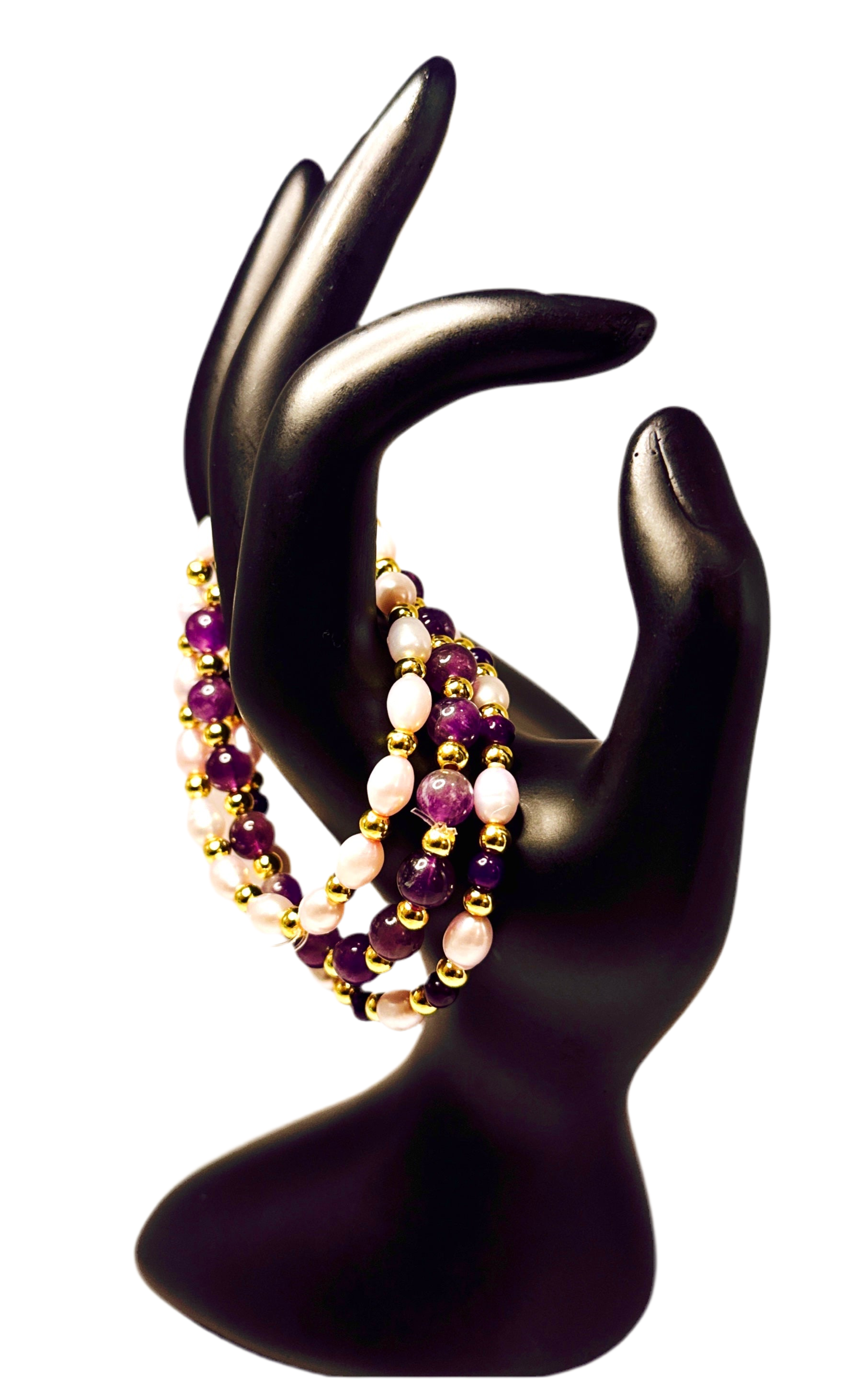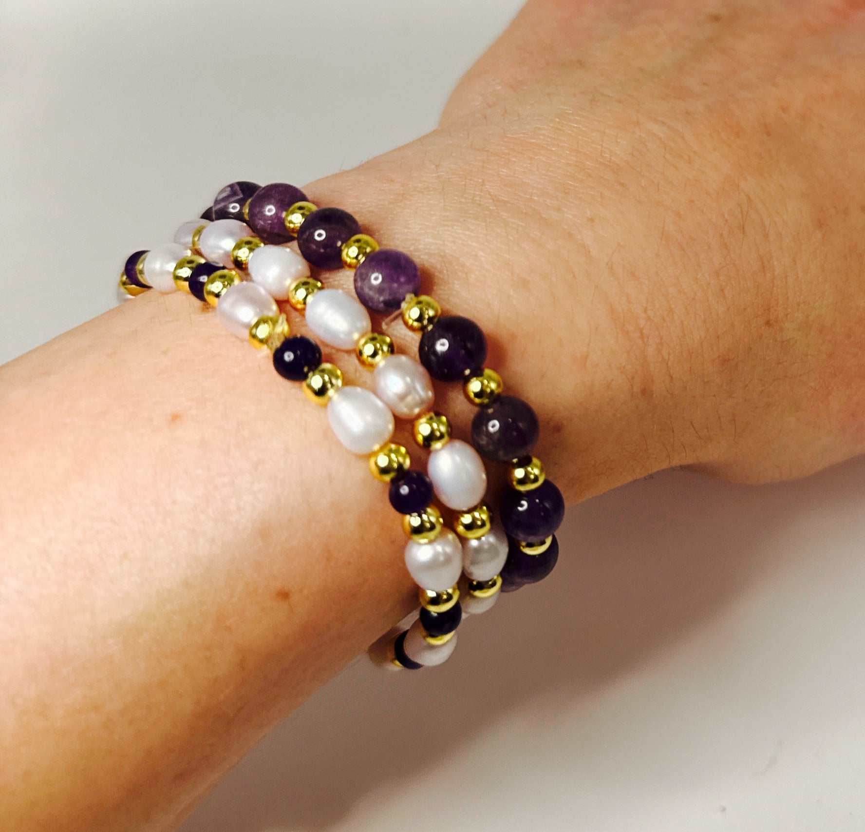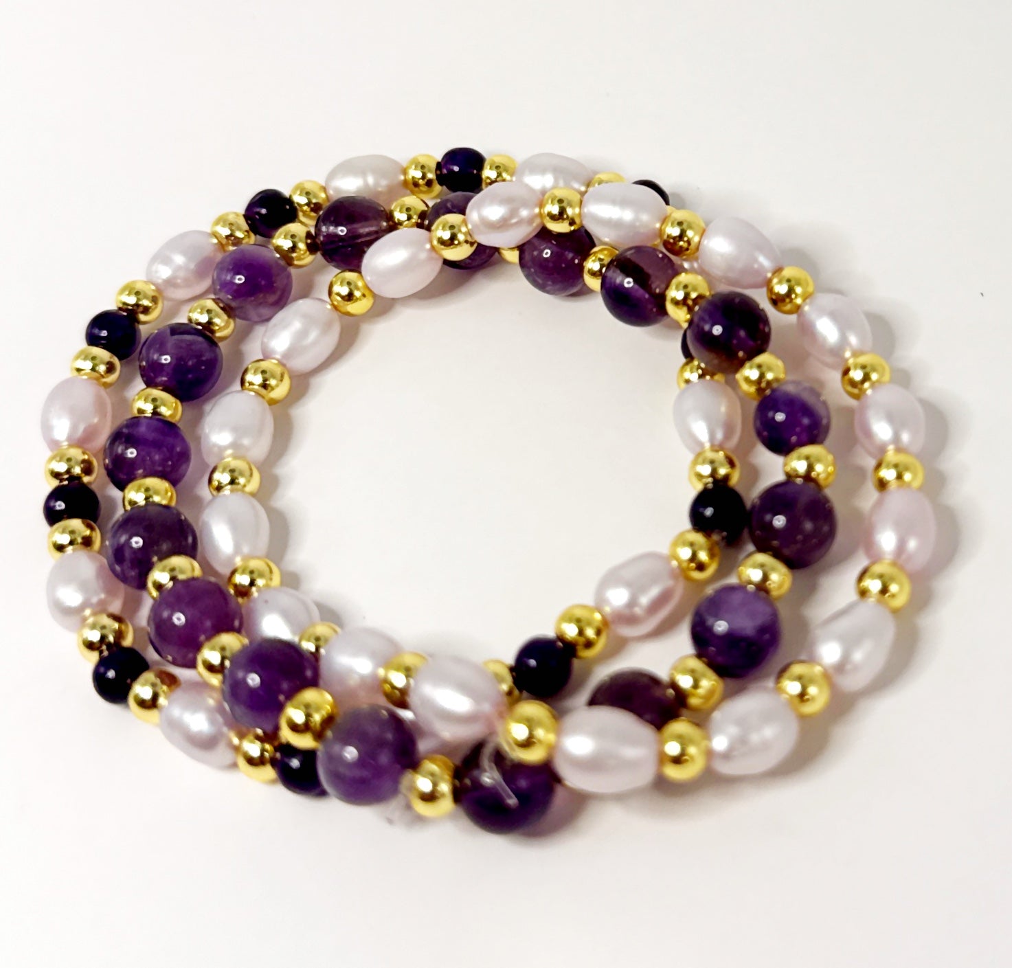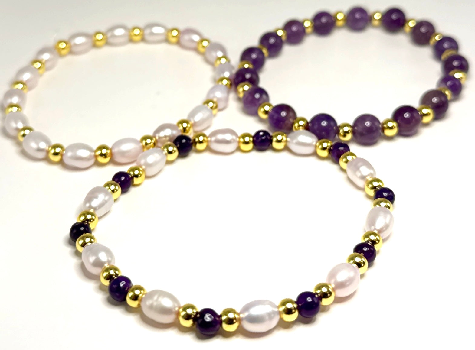 3. **Freshwater Pearls, Amethyst, and Gold Bracelet**: This captivating bracelet combines the beauty of freshwater pearls and amethyst gemstones, with gold spacers adding a touch of opulence. It's a versatile piece that brings together the best of both worlds.