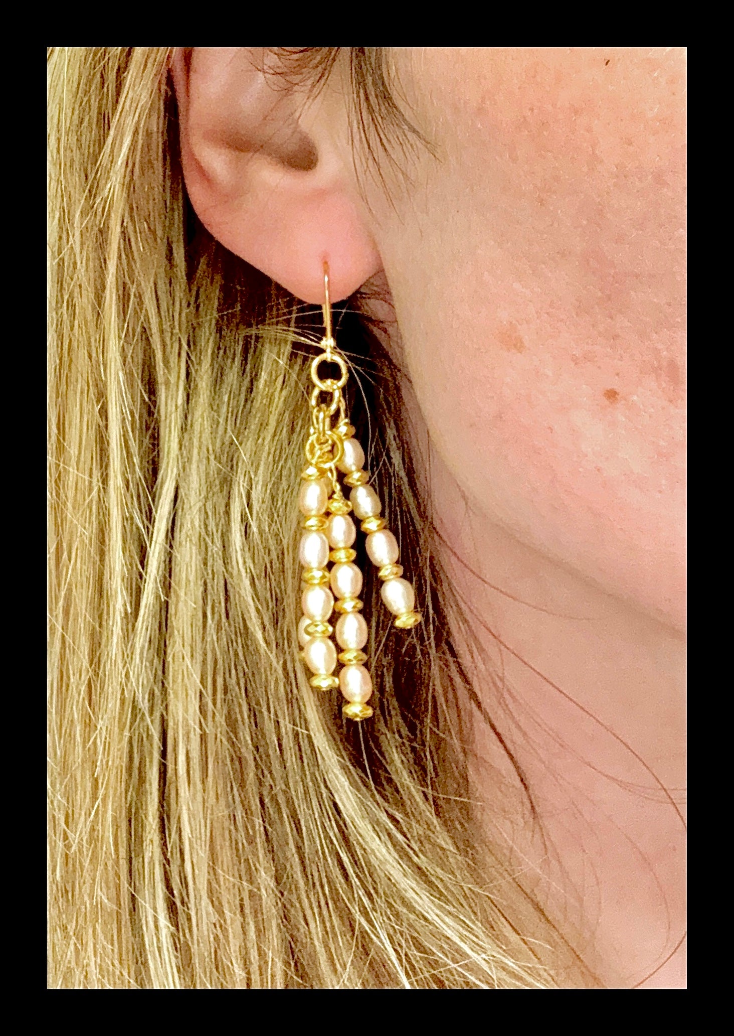Discover the epitome of grace with our Golden Pearl Chandler Earrings.